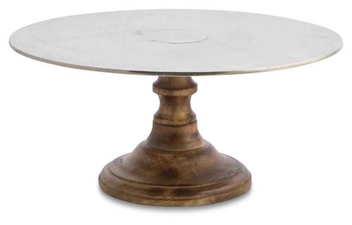 Aluminum Round Cake Stand on Mango Wood Base