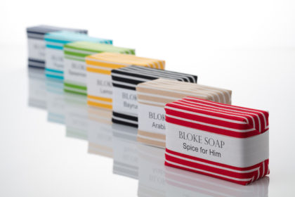 Our 200gm handmade Bloke Soap comes hand wrapped in our striped range of fabric and finished with our black and white wrap.