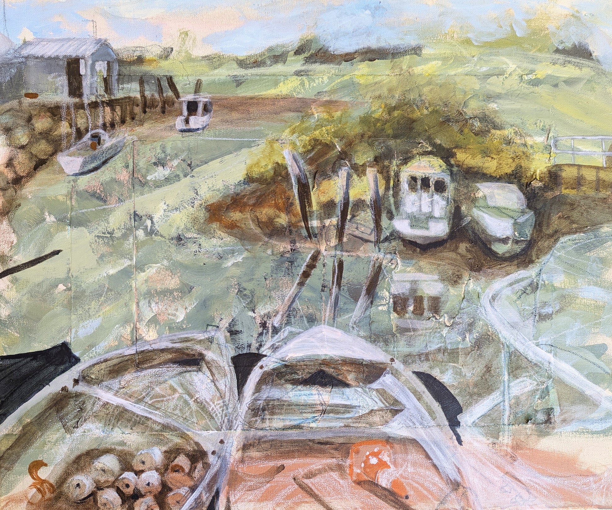 Painting the iconic old collection of boats in Wynnum Creek. They seem to be old friends, quietly nestling together, experiencing the light, shadow, and reflections shift across an unhurried day. There’s a gentle joy in simply pausing to take in this little corner of the universe. Breathing in and out with the tides as they ebb and flow – relaxed and in step with nature’s rhythm.