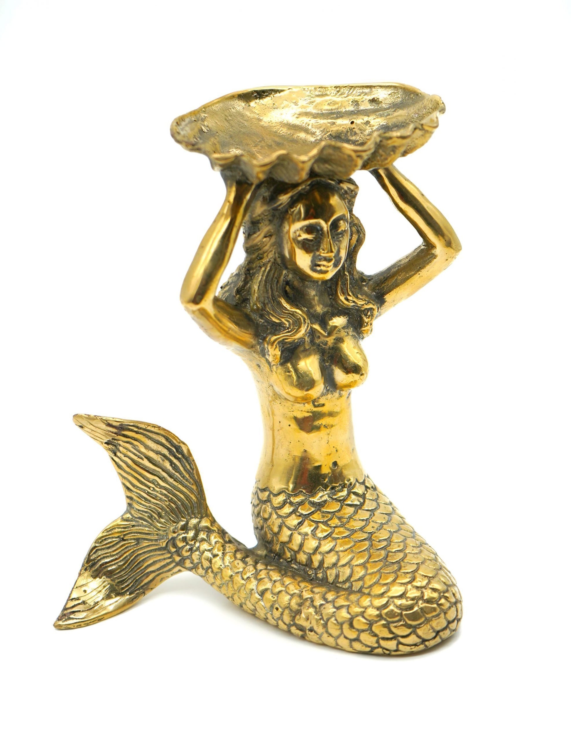 Brass Mermaid with Clamshell Dish