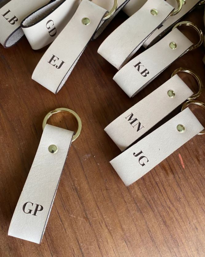 Beautifully simple, double-sided loop key ring with gold or silver hardware.
