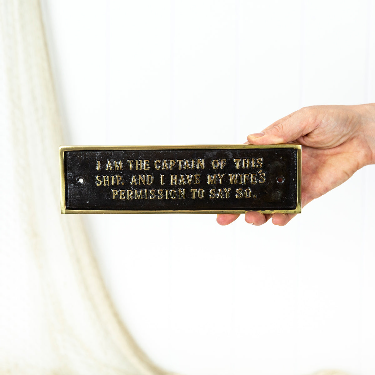 This sign reads "I am the Captain of this ship. And I have my wife's permission to say so."