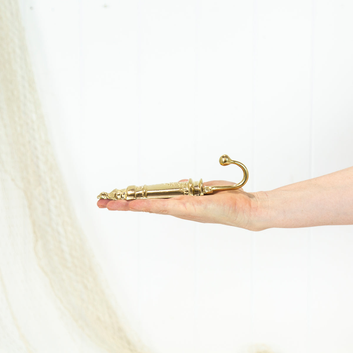 This sweet brass lighthouse hook has been designed exclusively for Coastal Vintage.