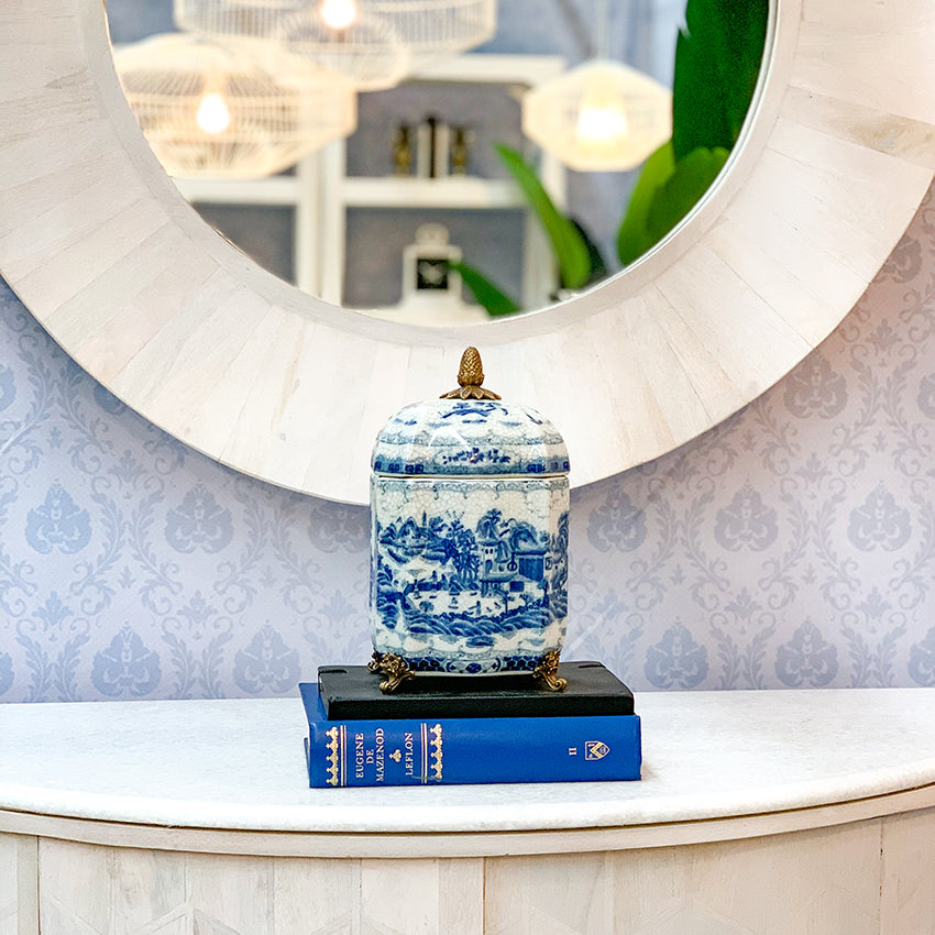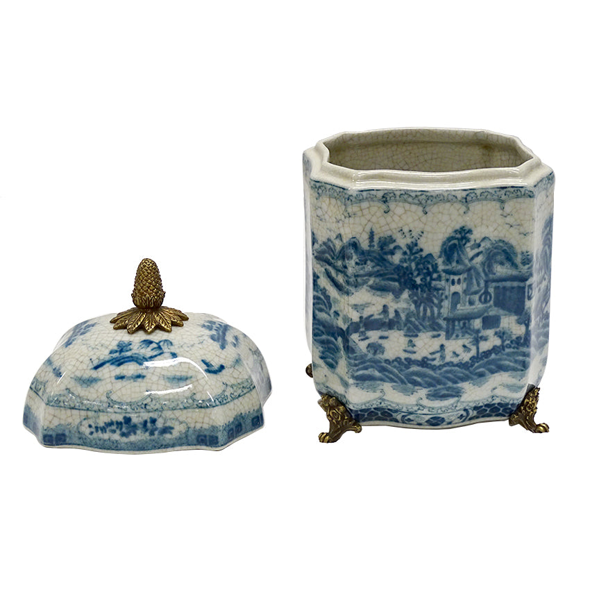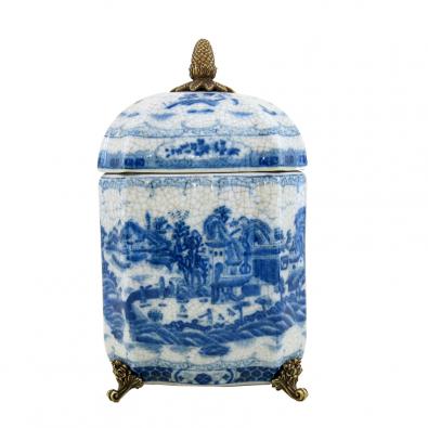 A blue and white Chinoiserie design has been carefully hand-painted, with a crackle finish inside and out giving a rich antique look.