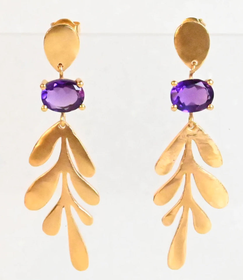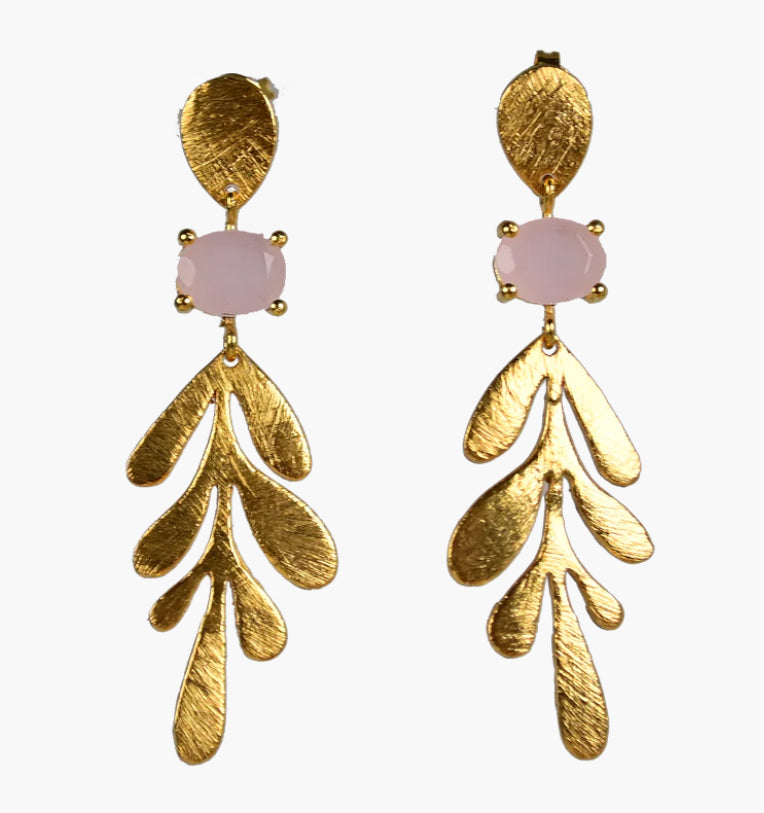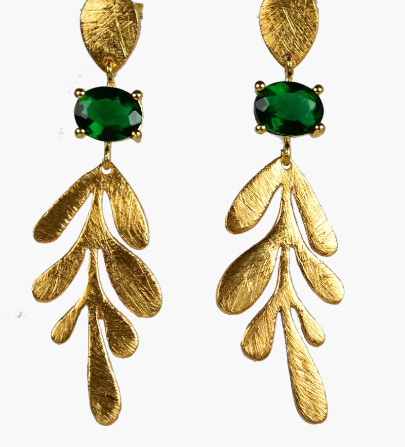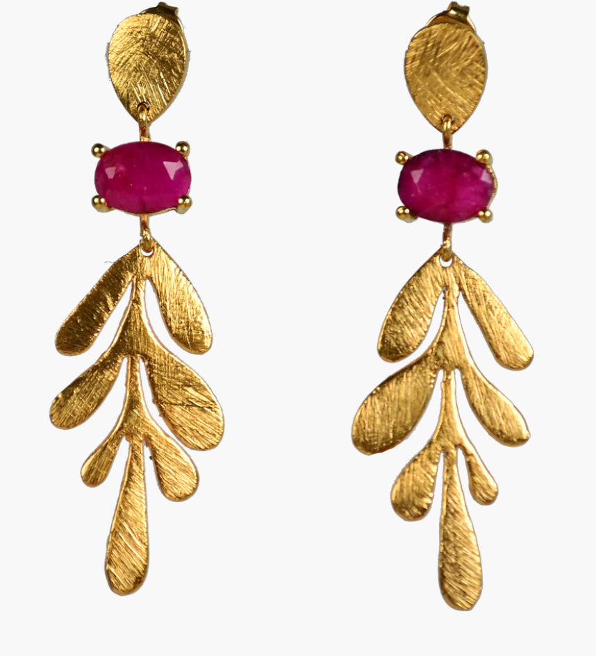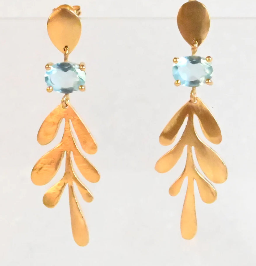MW Gold Leaf drop Gemstone Earrings A12 (Various)