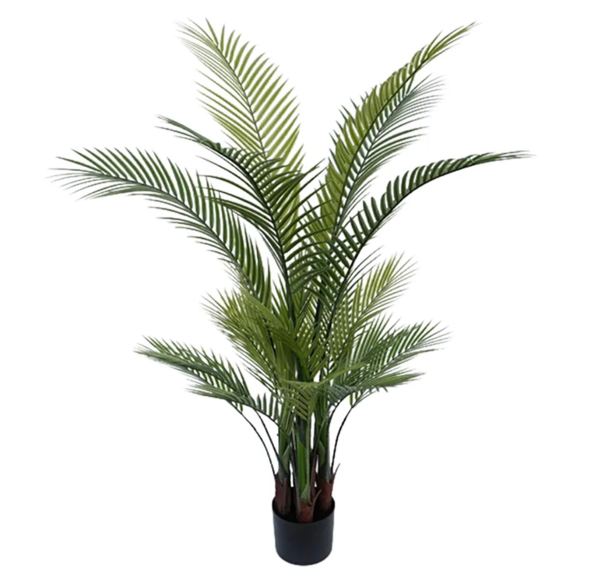 Make every day a holiday with our artificial Palm Tree, elegantly potted in black. Whether it graces a spacious living room, commercial area, or vibrant office lobby, this artificial palm tree exudes a biophilic effect, uplifting mood and motivation with every glance. Enjoy the hassle-free benefits of indoor greenery, thanks to its low-maintenance nature and hypoallergenic properties. No assembly is needed, and maintenance is a breeze, just dust with a static feather duster to maintain its freshness and vibrancy