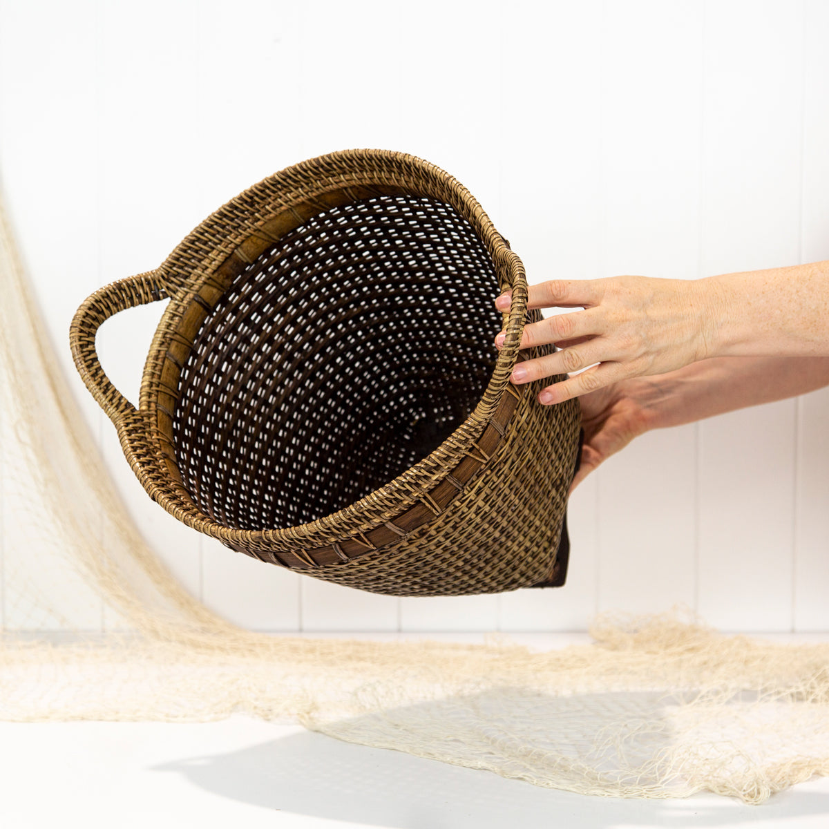 These high-quality rattan baskets with beautiful details have been handmade in Indonesia.