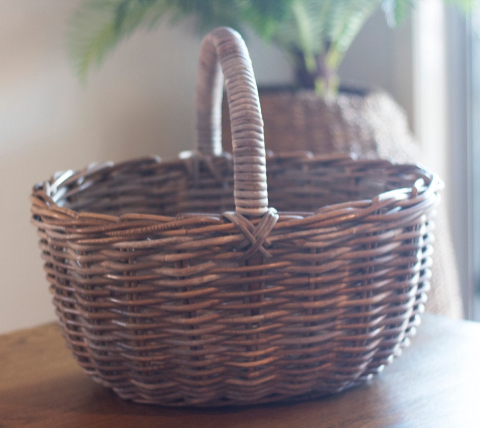 Rattan Oval Baker Basket with  Handle in Kubu Grey finish.