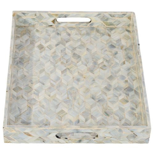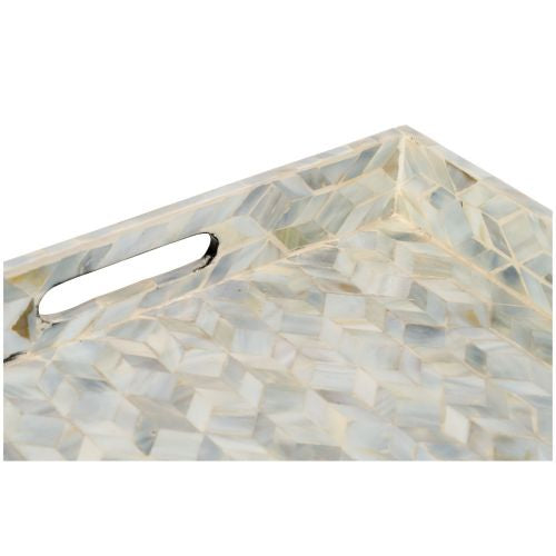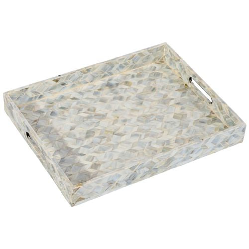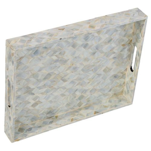 Rectangular Sapphire Capiz Shell Tray With Handles - Light Blue