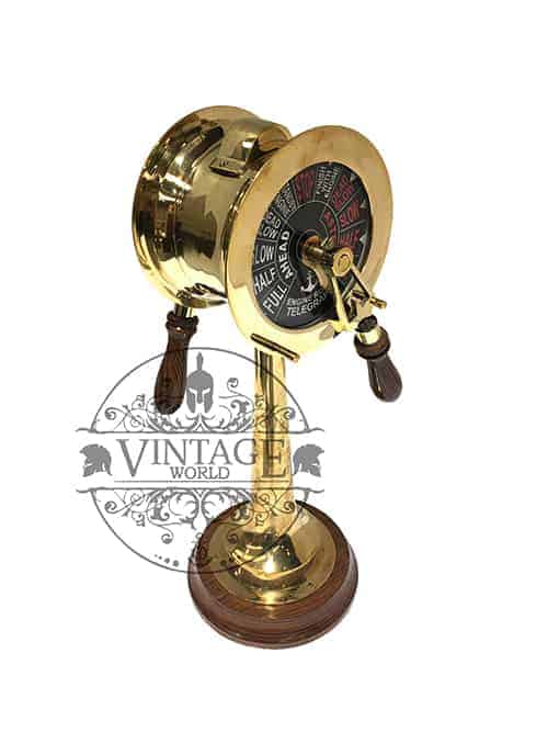 This style of Ship Order Telegraph was used on ships (and submarines!) from the 19th Century until around 1950. A communication device, it was used to send directions about altering the vessel’s speed from the pilot on the bridge to the engineers in the engine room. This was done by the pilot moving the lever to a different position on the dial, triggering a bell in the engine room. The engineers would acknowledge the order by moving their lever to the same position and would then adjust the speed accordingly.